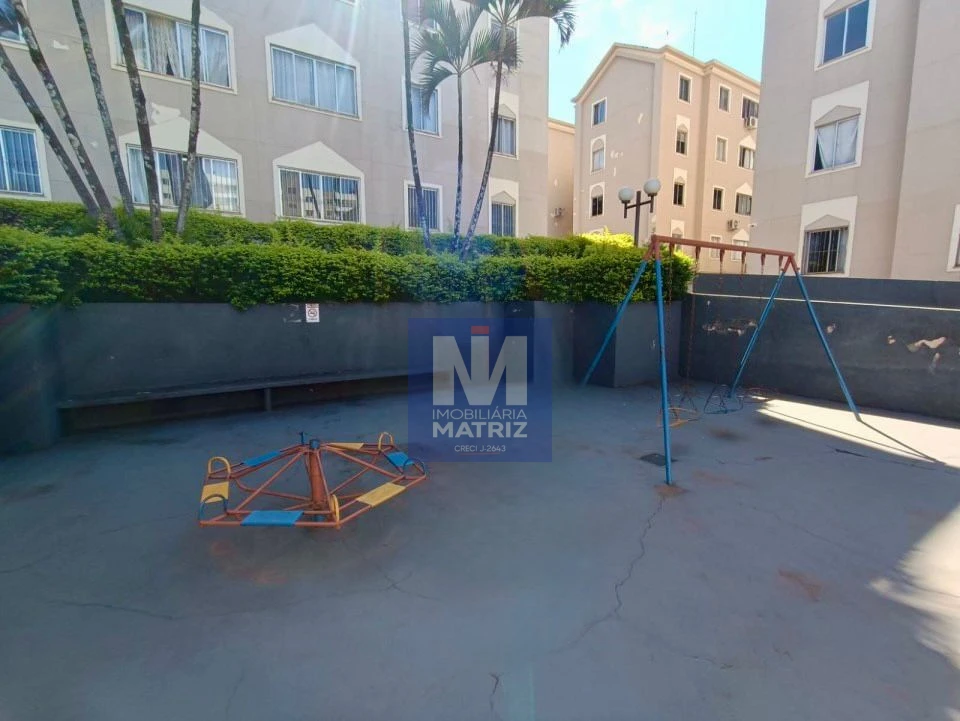 3 dormitórios, sala em 2 ambientes, cozinha, banheiro, área de serviço e garagem, Condomínio possui piscina, playground e salão de festas