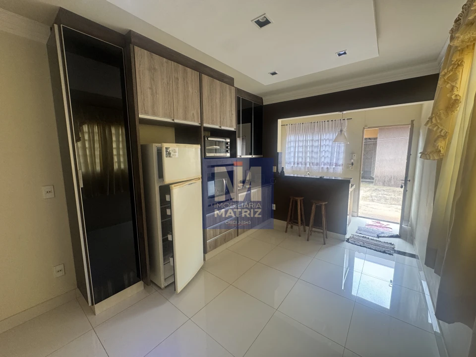03 dormitórios sendo 1 suíte, sala, cozinha planejada, banheiro social, área de serviço, garagem, área com churrrasqueira, despensa e banheiro