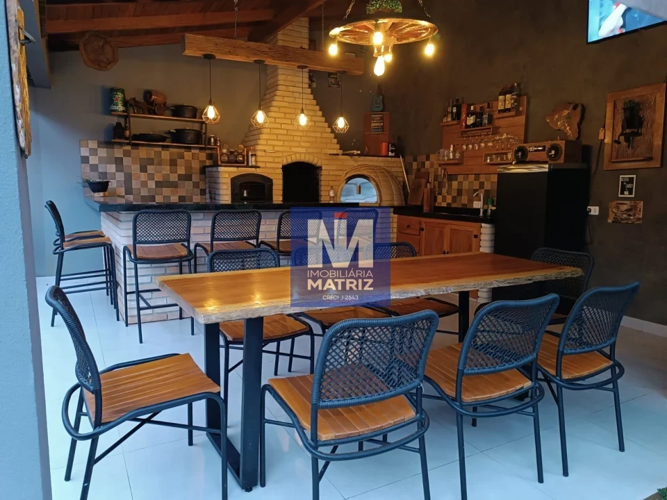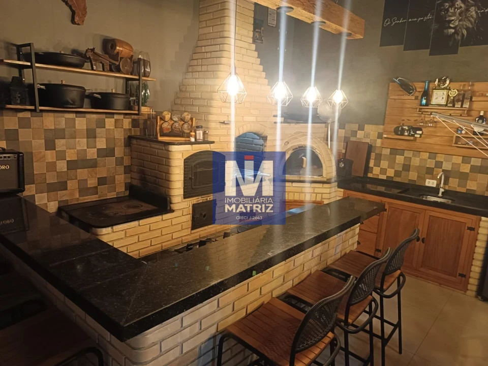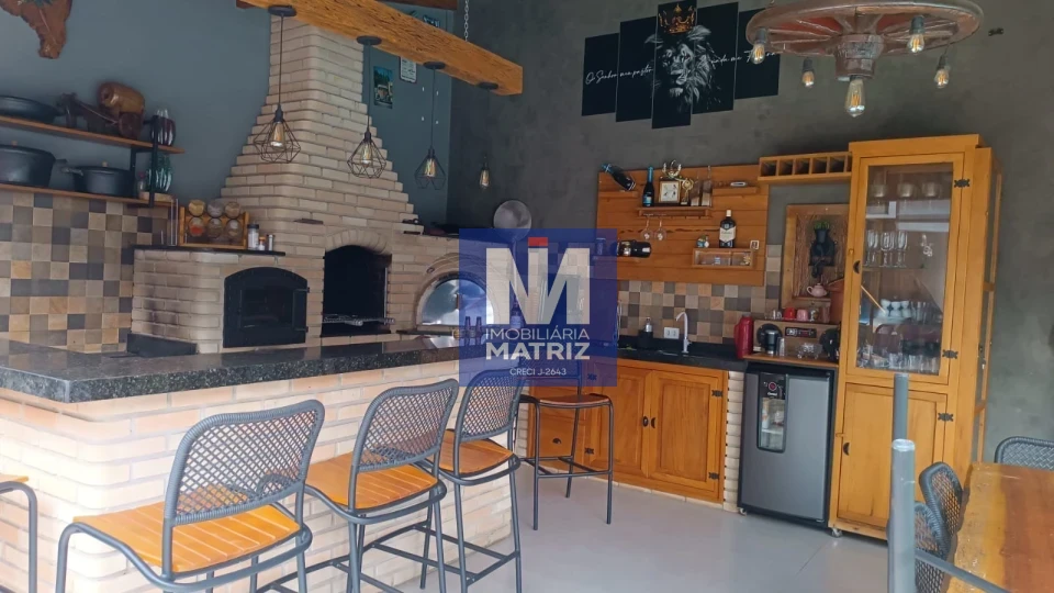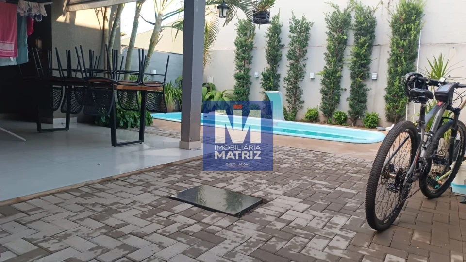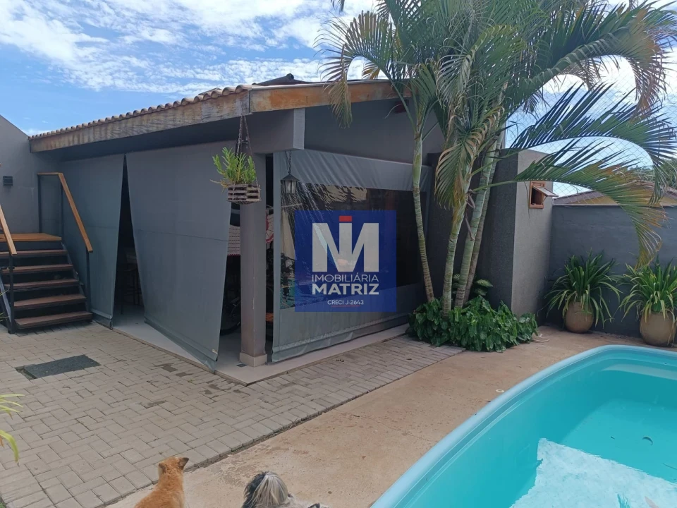 Área total construída 200 metros , incluindo a parte de cima e área de churrasqueira, sala, cozinha, copa, três quartos, sendo uma suíte, um banheiro social, um banheiro na área da churrasqueira, piscina de 3x6 com aquecedor, lavanderia e uma salinha para despensa na frente, sacada com pergolado.