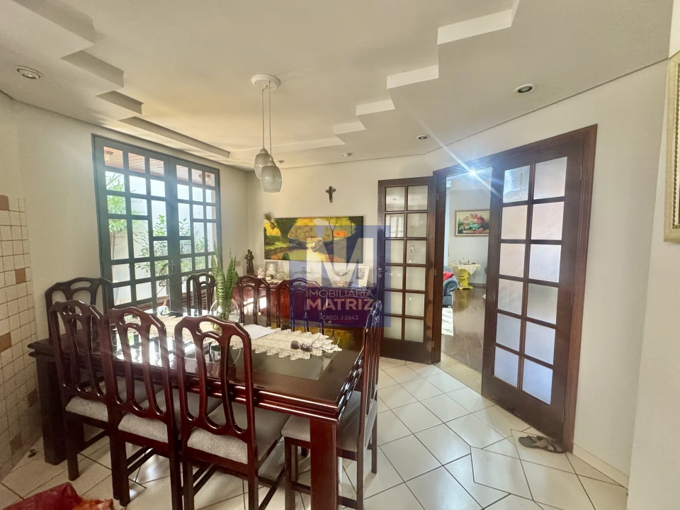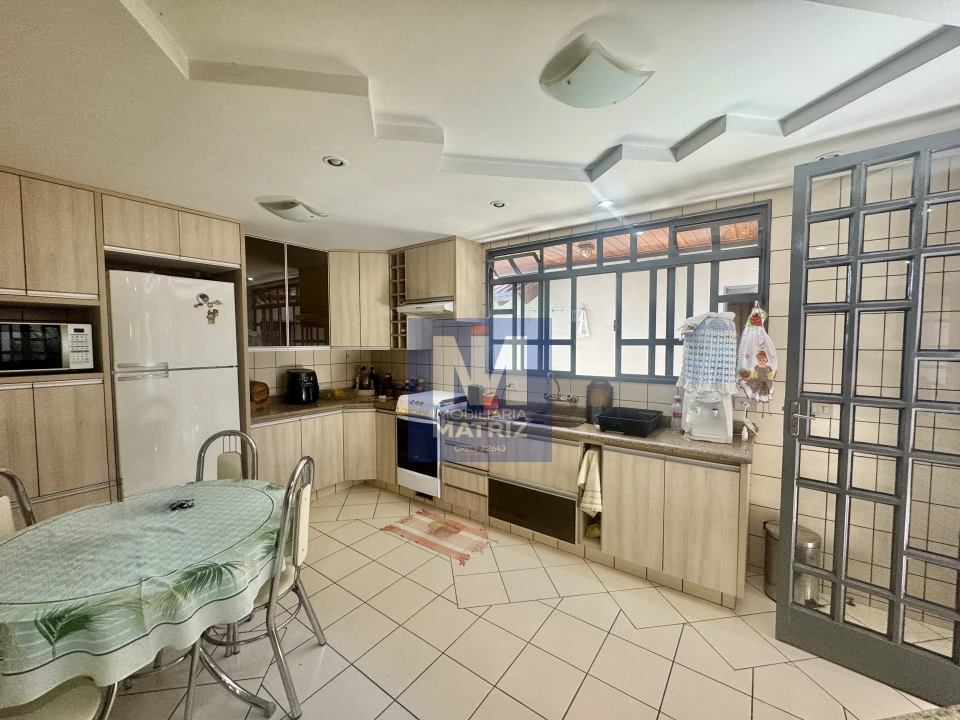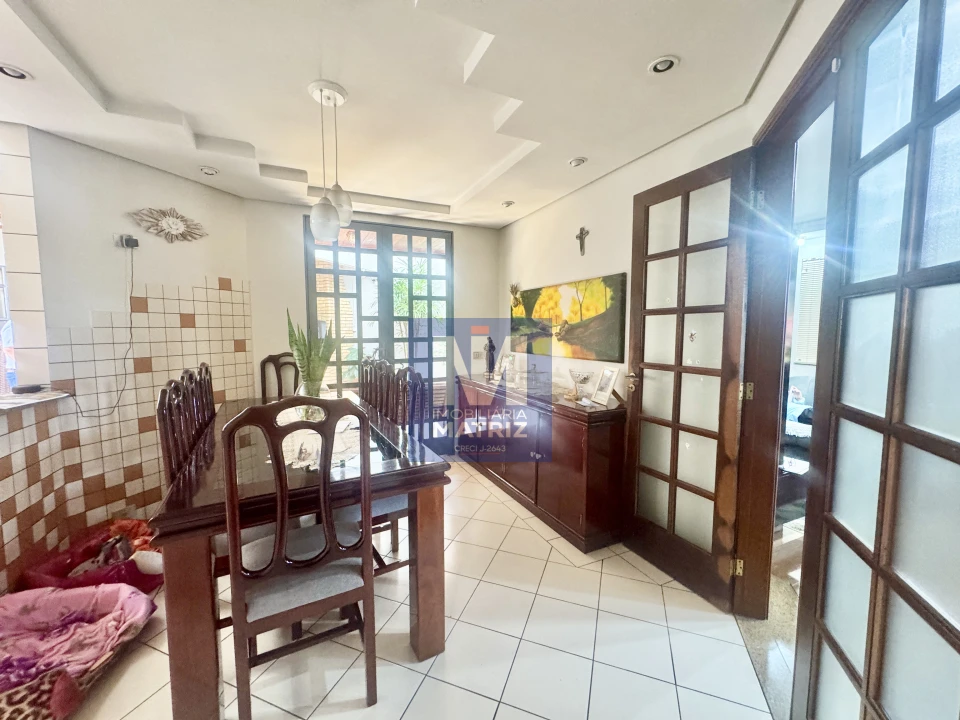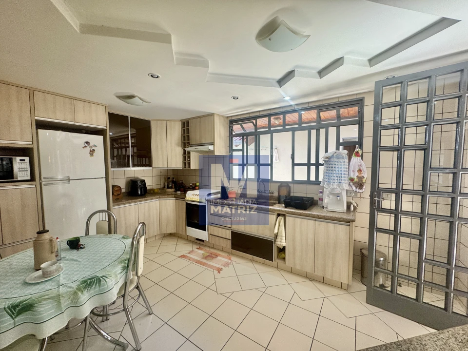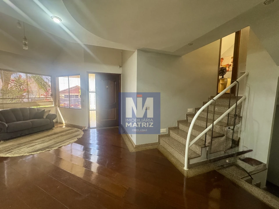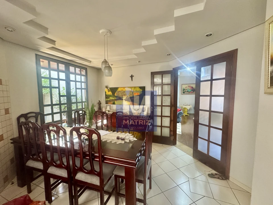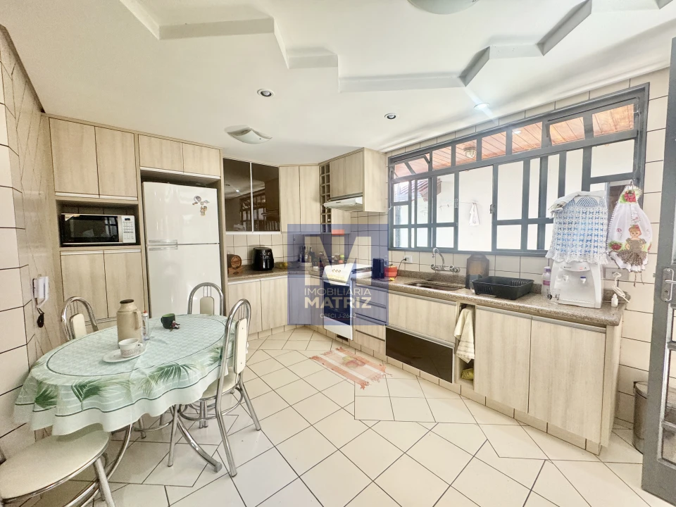04 dormitórios sendo 01 suíte, sala de estar, sala TV, sala de jantar, cozinha planejada, 01 lavabo, banheiro social, piso cerâmico e assoalho de madeira, pé direito alto, área com churrasqueira, dependência com 01 dormitório, sala, cozinha, banheiro, área de serviço, garagem para 02 carros