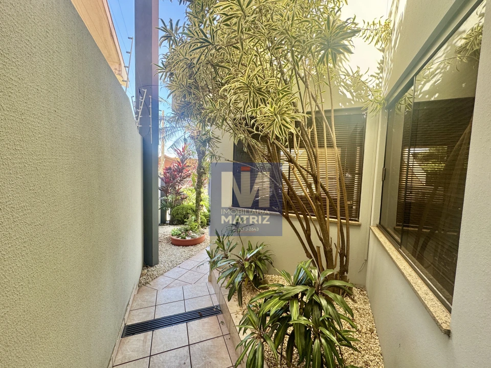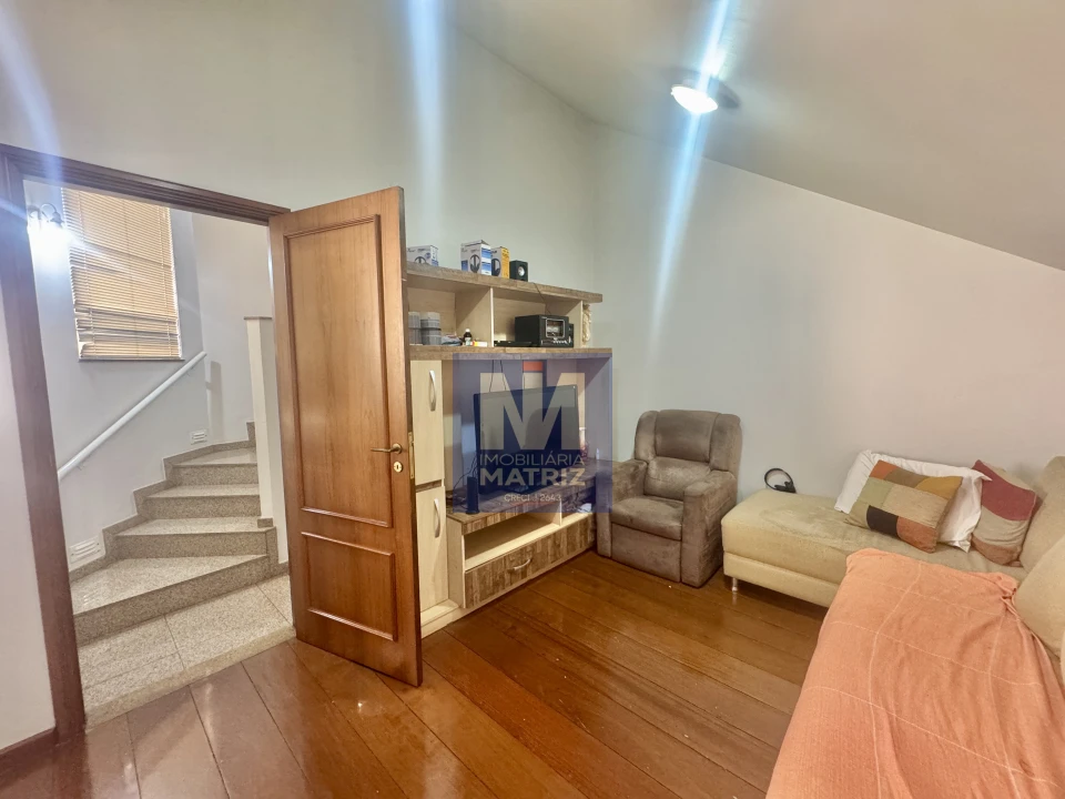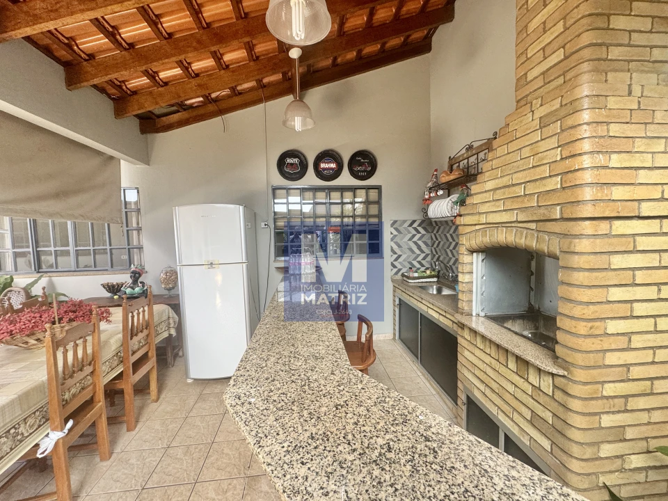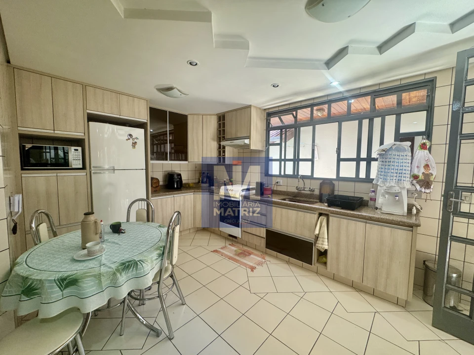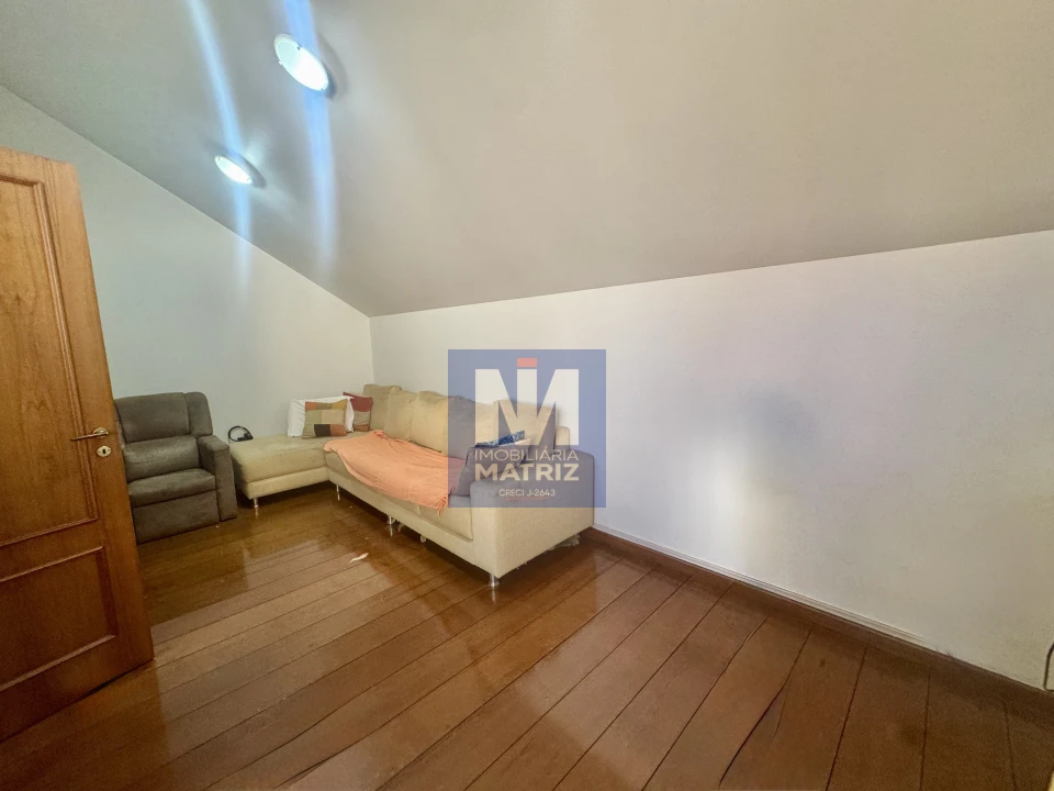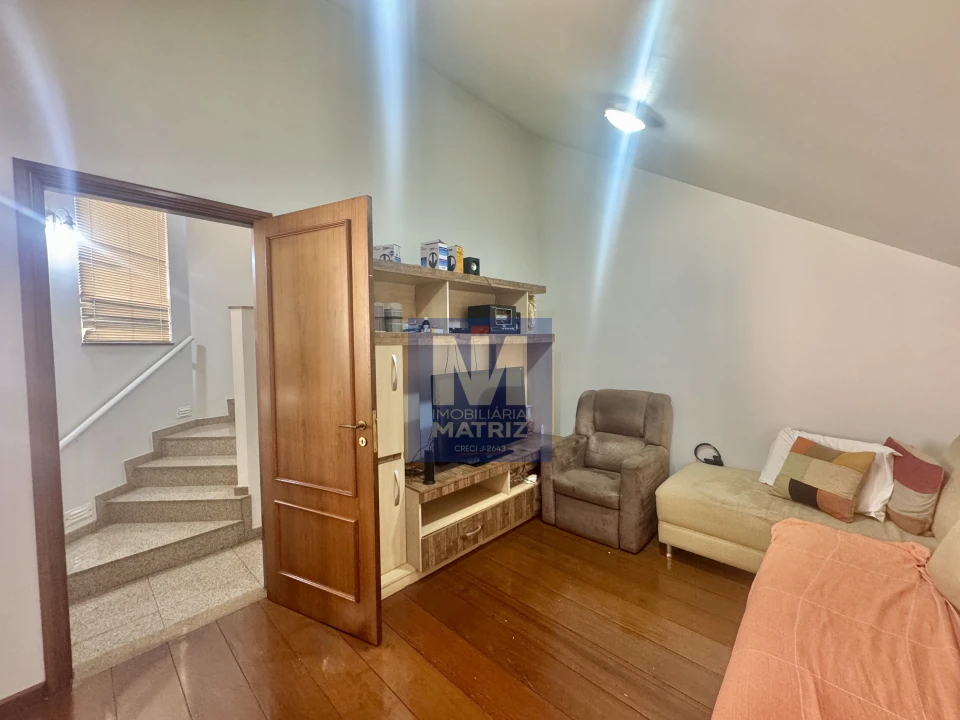 04 dormitórios sendo 01 suíte, sala de estar, sala TV, sala de jantar, cozinha planejada, 01 lavabo, banheiro social, piso cerâmico e assoalho de madeira, pé direito alto, área com churrasqueira, dependência com 01 dormitório, sala, cozinha, banheiro, área de serviço, garagem para 02 carros