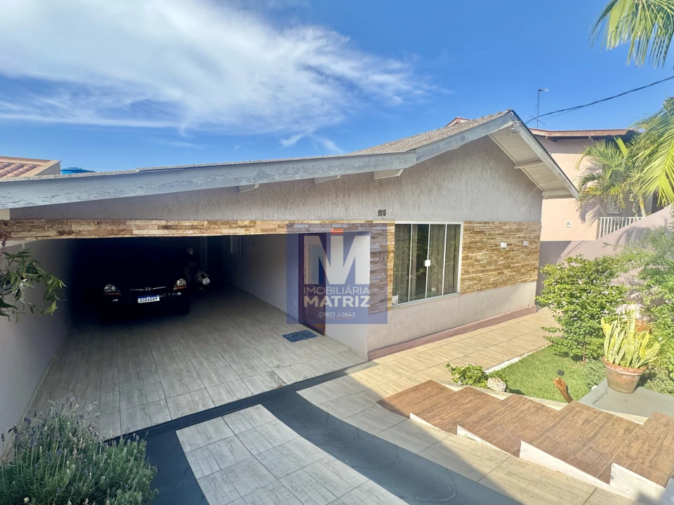 Casa para venda na Rua Mathias Hein, no Jd. Santo Antônio em Cambé, possui 3 dormitórios, 2 salas, copa, cozinha planejada, 2 banheiros, lavabo, área com churrasqueira, área de serviço, amplo quintal, grama na frente e 2 vagas de garagem.