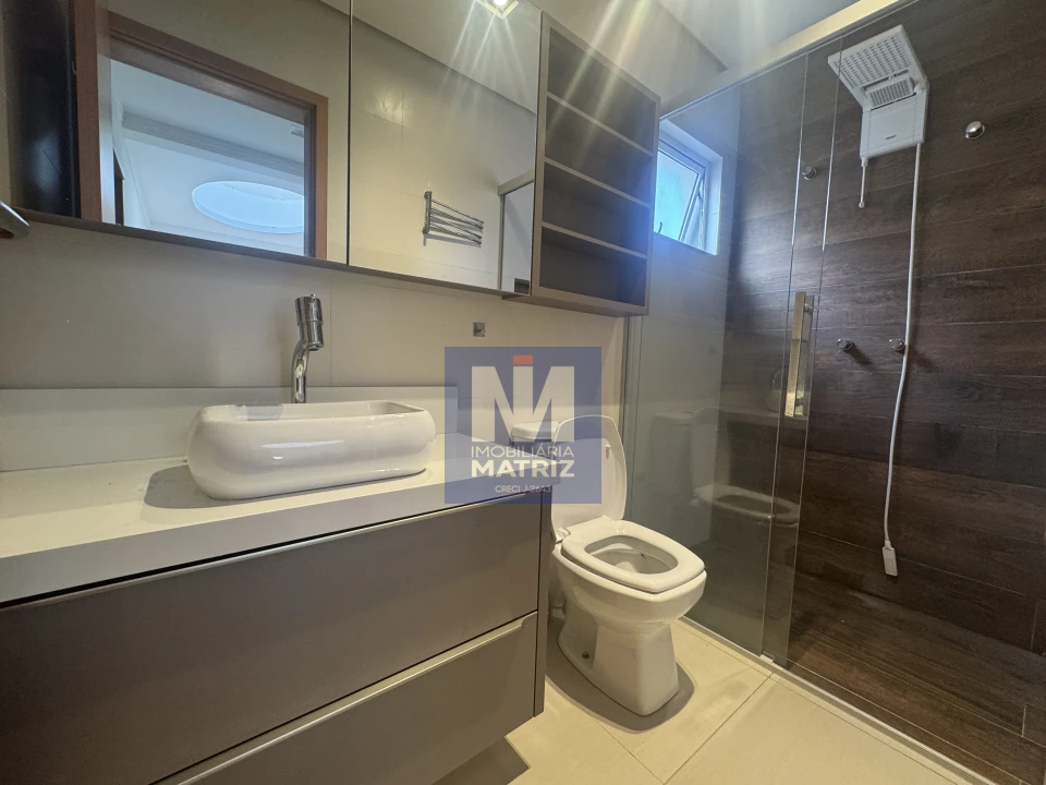 Piso superior com 03 dormitórios sendo 01 suíte e closet, sacada