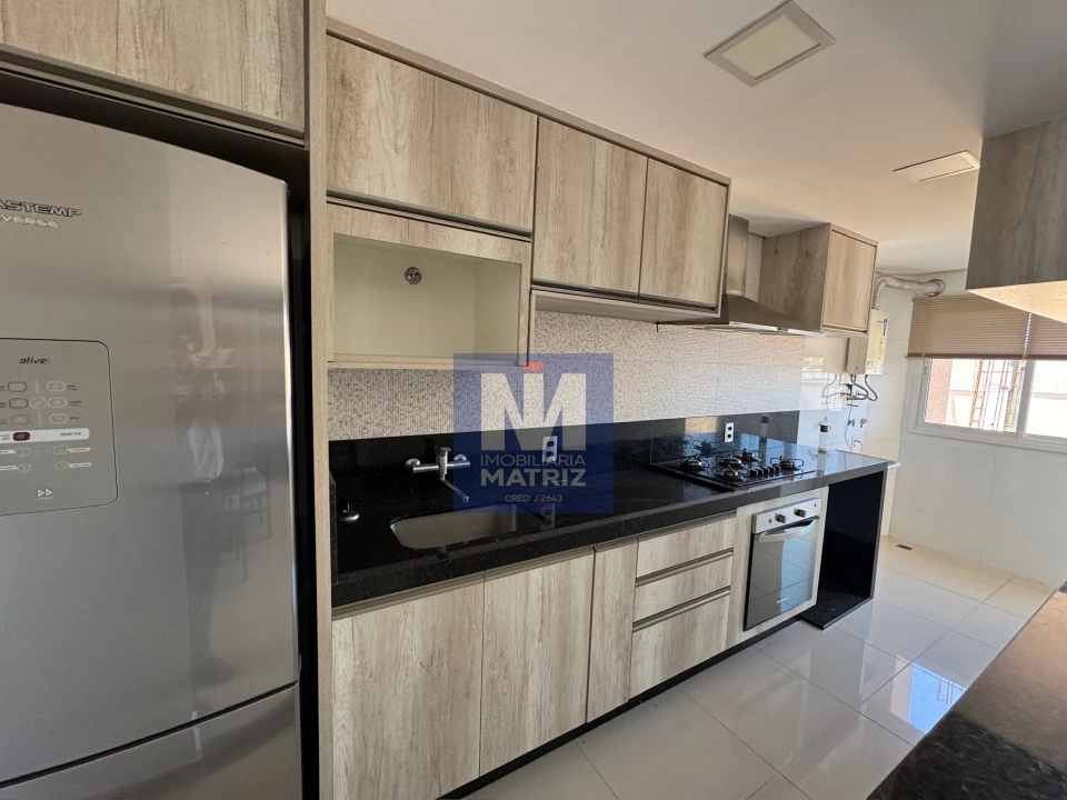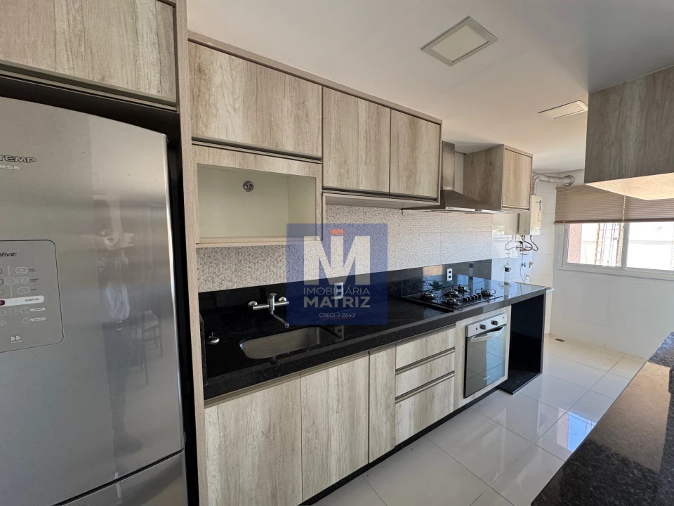 2 Dormitórios sendo 1 suíte com ármario, Sala, Cozinha Planejada, Banheiro, área de serviço, ar condicionado, Sacada c/Churrasqueira, 02 vagas de garagem